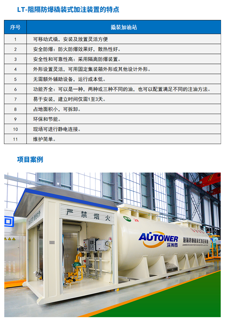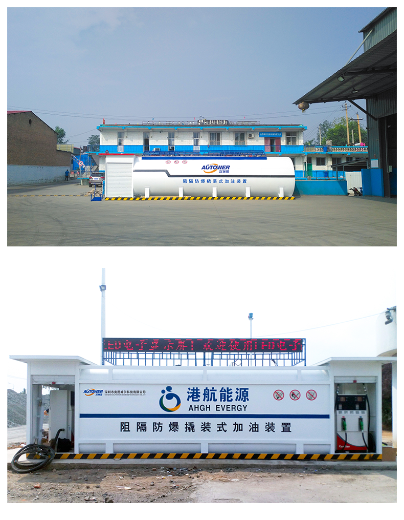 2、雙層罐帶雙防爆抑制系統(tǒng)的撬裝加油站。